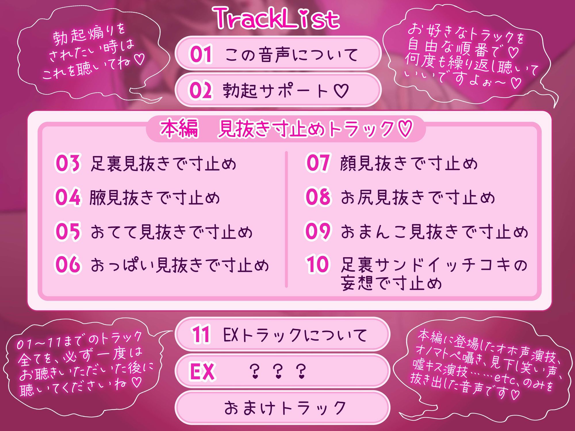 本編トラックはどれも大体約7分〜10分ほどであなたの寸止めオナニーをちょい足しできちゃいます♪