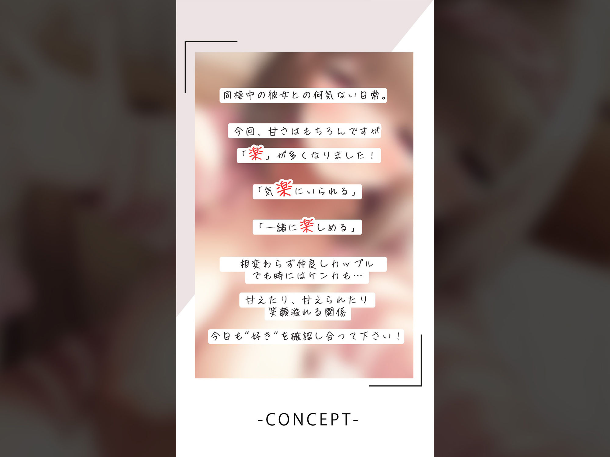 ジャンル: 中出し、フェラ、ローター、恋人同士、純愛、男性向け、成人向け、ASMR、キス、手コキ、フォーリーサウンド、密着