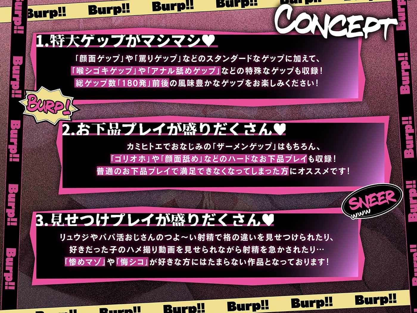 ※今作のゲップ数は180発前後で、全て声優様ご本人に収録していただいております。