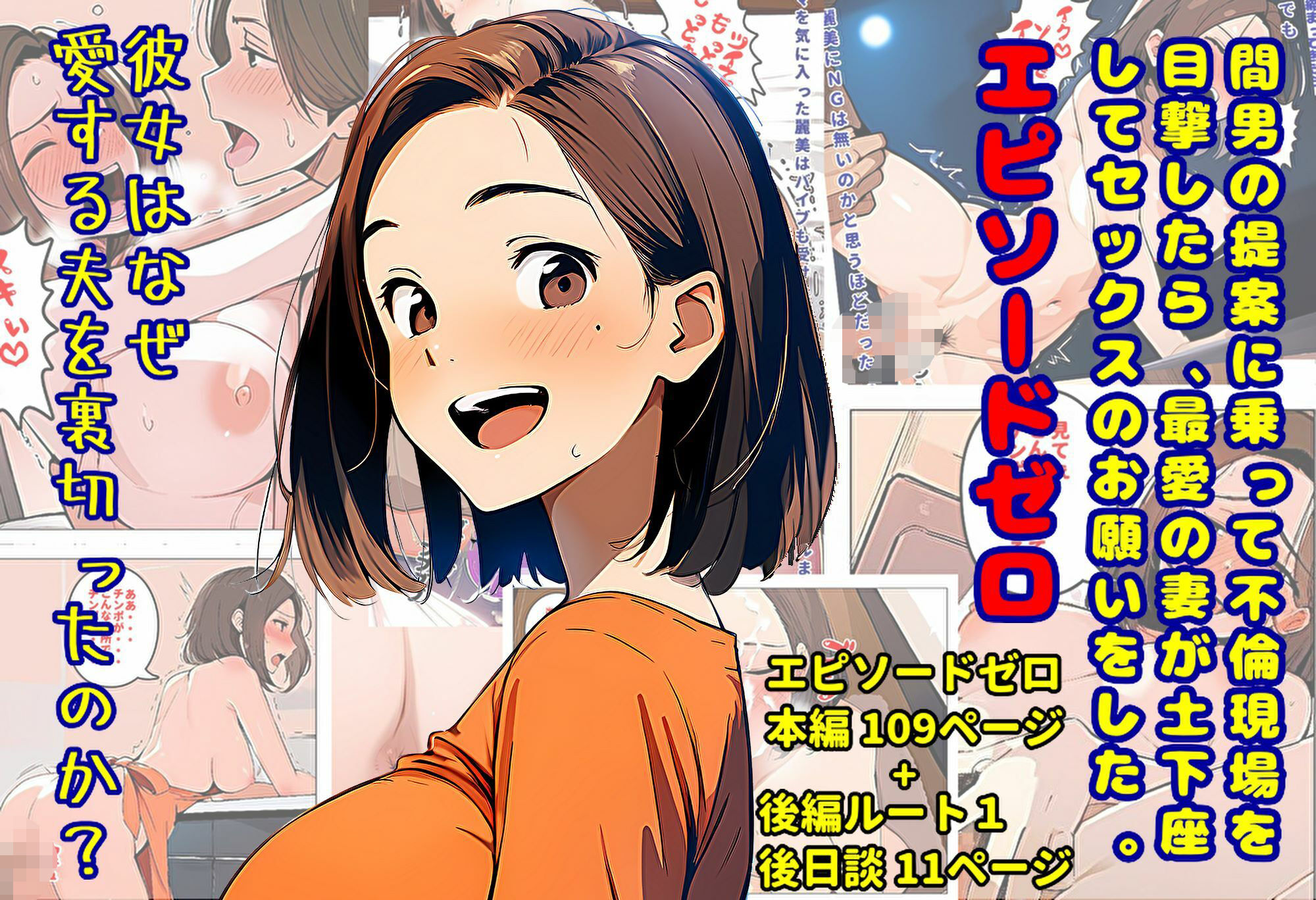 本作は「間男の提案に乗って不倫現場を目撃したら、最愛の妻が土下座してセックスのお願いをした。」シリーズの、現時点での全作品が入っている総集編です。総集編と同時配信予定の「後編ルート1の後日談の後日談」も入ってます。