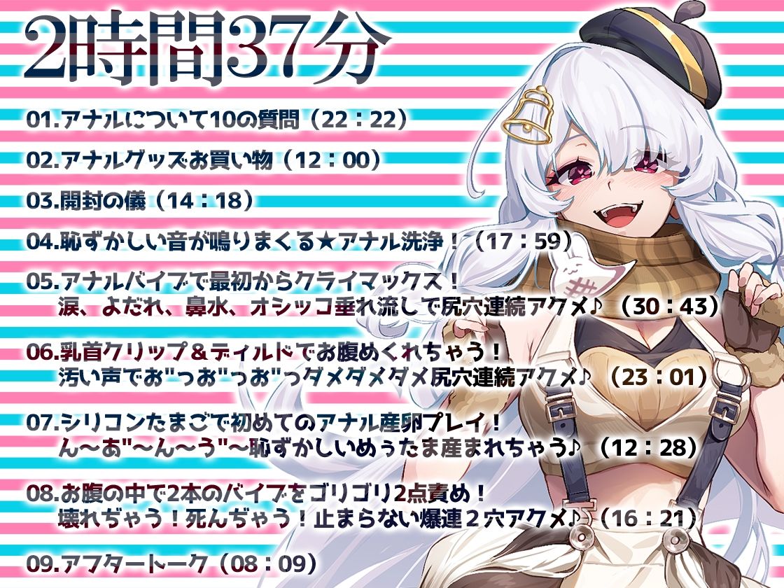 ジャンル: アナル、オナニー、浣腸、ノンフィクション・体験談、お尻・ヒップ、男性向け、成人向け、淫語、マニアック/変態、連続絶頂、オホ声、実演