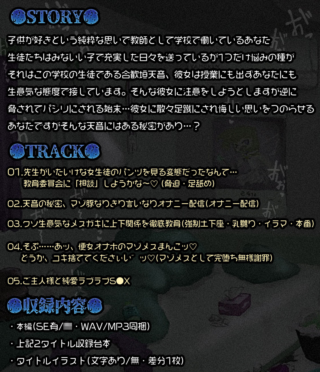 【【オホ声・汚喘ぎ】乳と態度がデカい生イキ盛りの教え子J●をマゾ牝雄媚乳豚オナホに徹底教育】 作者名