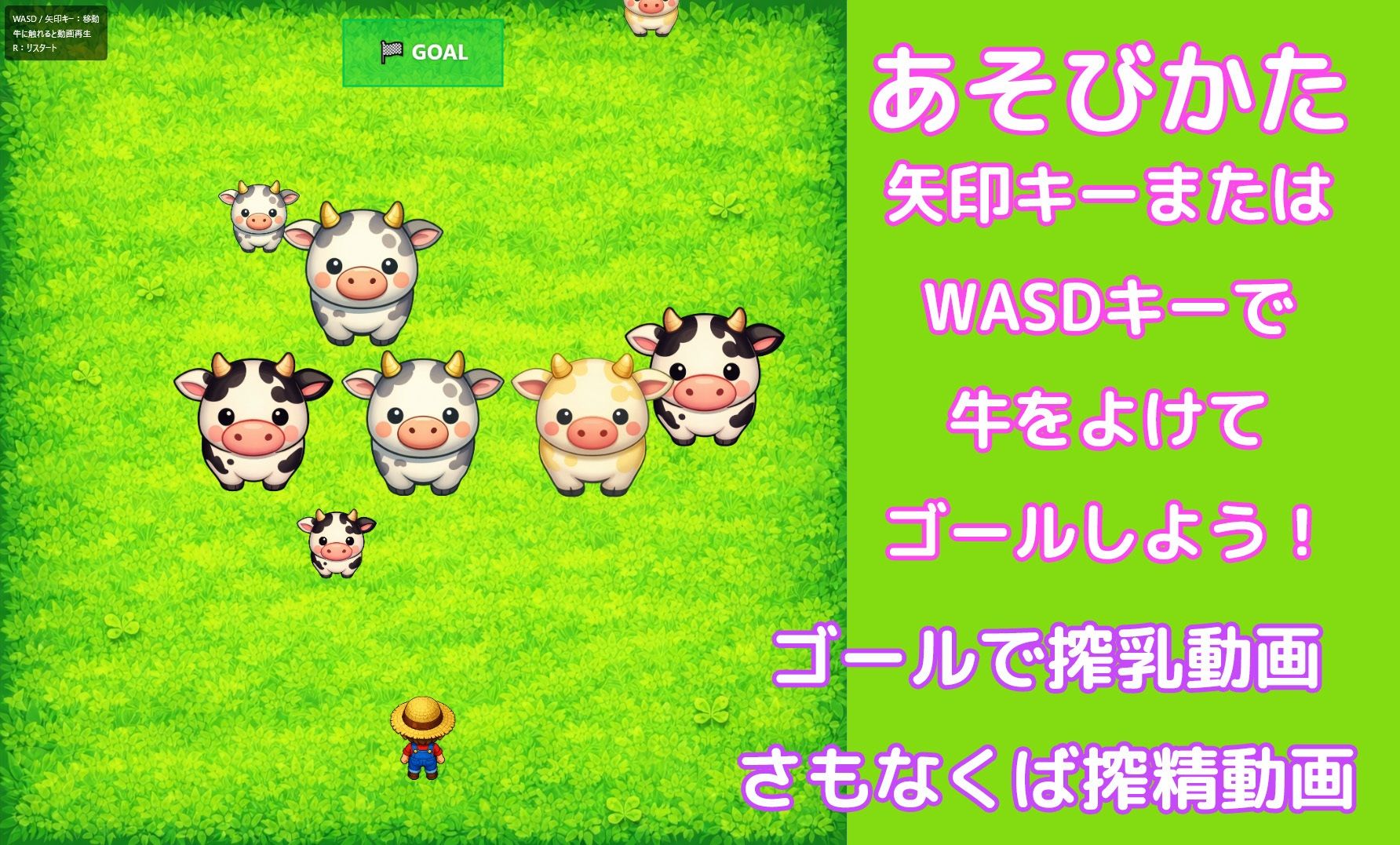 上から降ってくる牛たちを避けながらゴールを目指そう!