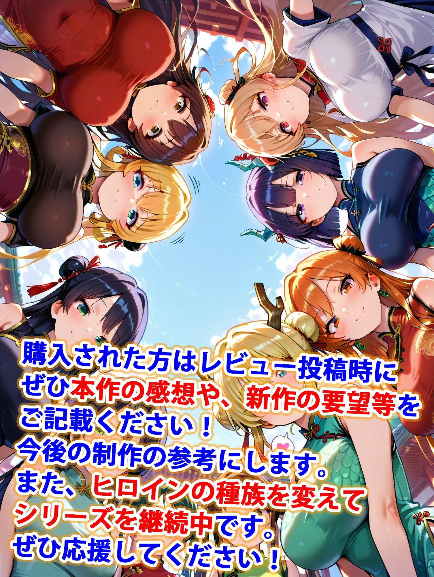 チャイナ服に身を包んだ竜神娘のヒロインたちが、主人公の種付けを待ち望んでいます。