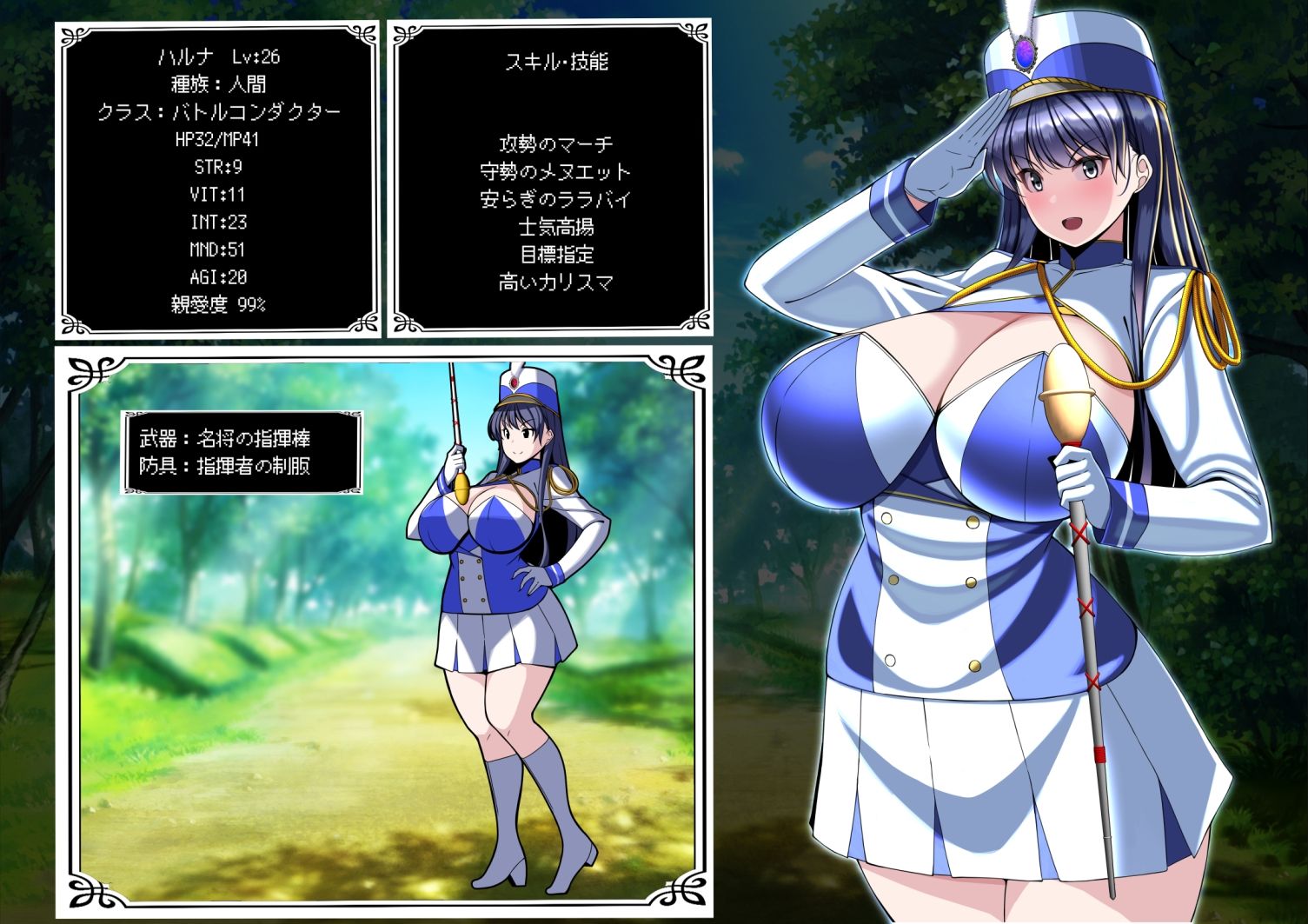 遠征に送り出したヒロイン達の状況を見守っている、といった趣向の作品になります、プレイヤーはストーリーに絡みません。ステータス画面やキャラクター紹介などゲーム画面風味の強いCG集になっています。