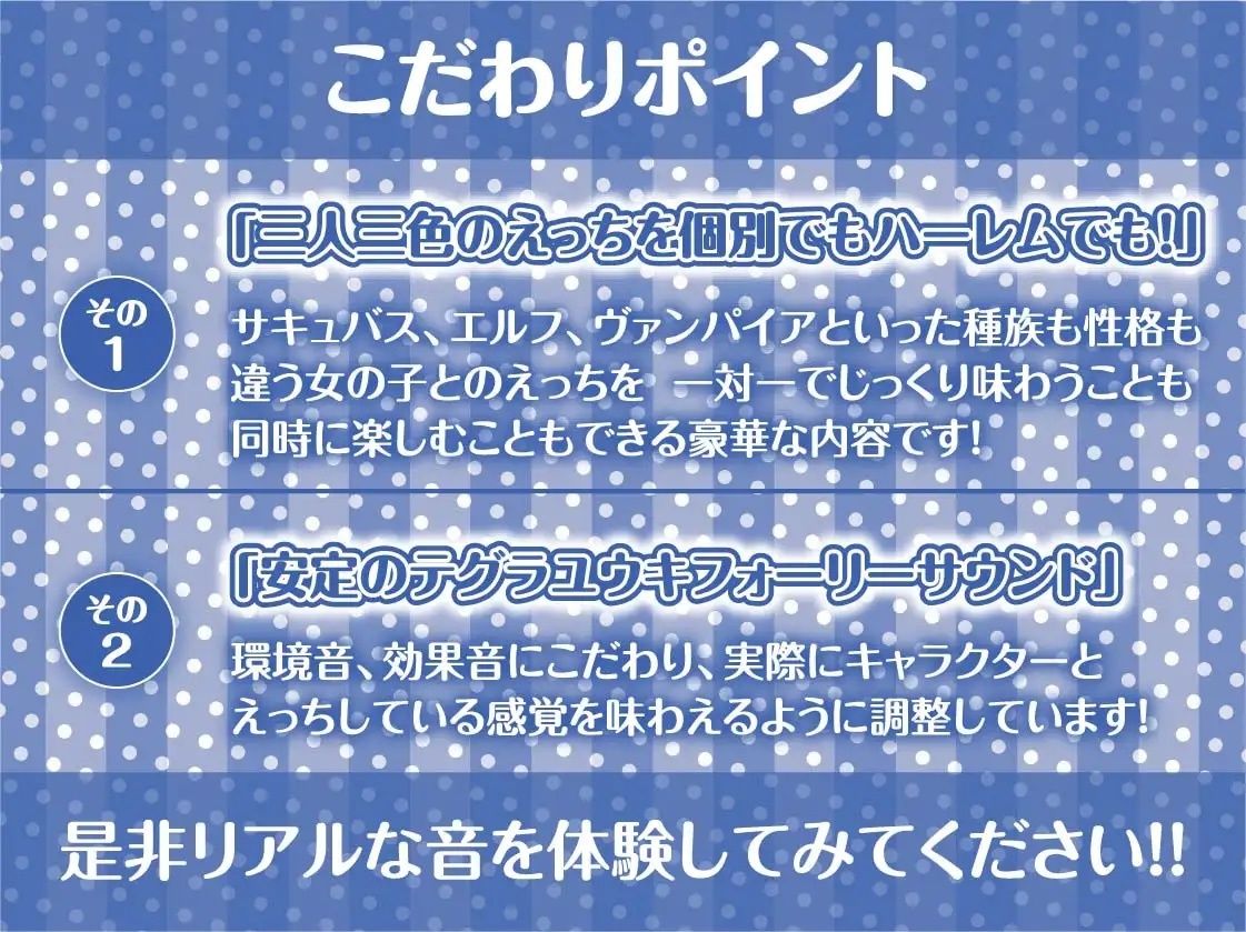ジャンル: ファンタジー、乱交、中出し、3P・4P、ラブラブ・あまあま、エルフ・妖精、人外娘・モンスター娘、男性向け、成人向け、手コキ、サキュバス/淫魔