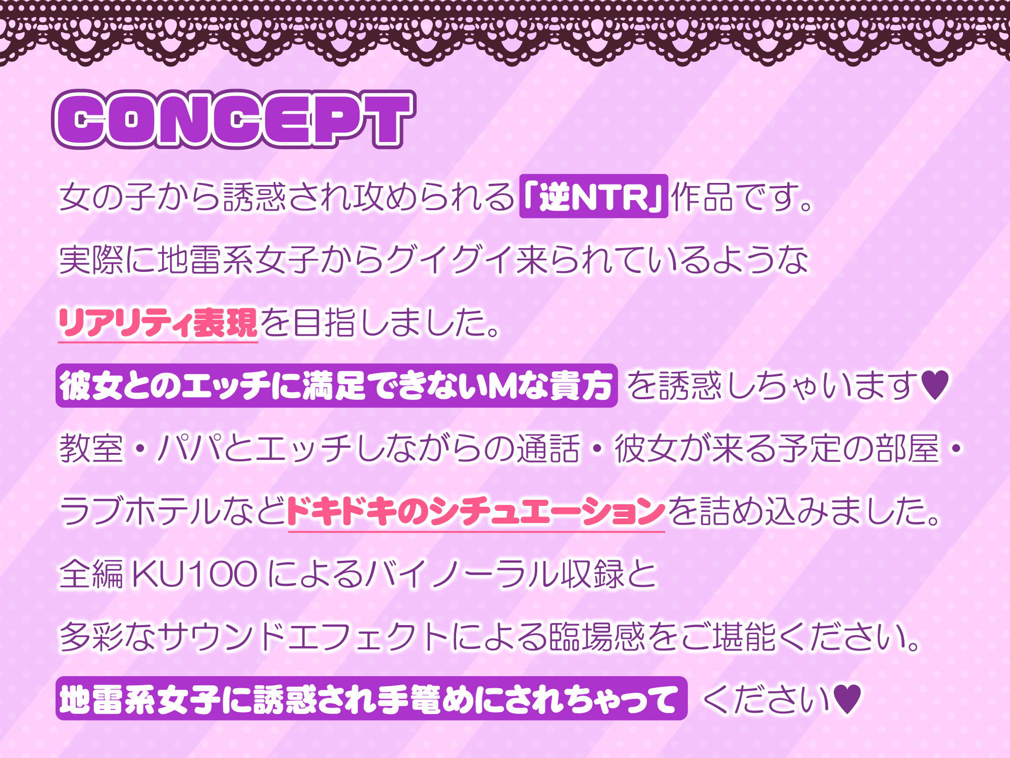 【KU100】地雷系パパ活女子の挑発逆NTR〜カノジョにバレずに浮気セックスしちゃいます?〜