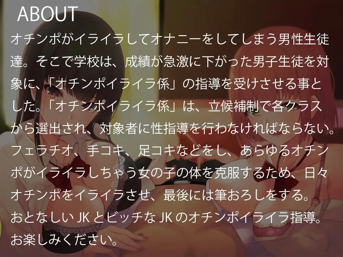 オチンポがイライラしてしまい、勉強に身が入らないあなたを二人のJKがいやらしく責め立ててくれます。