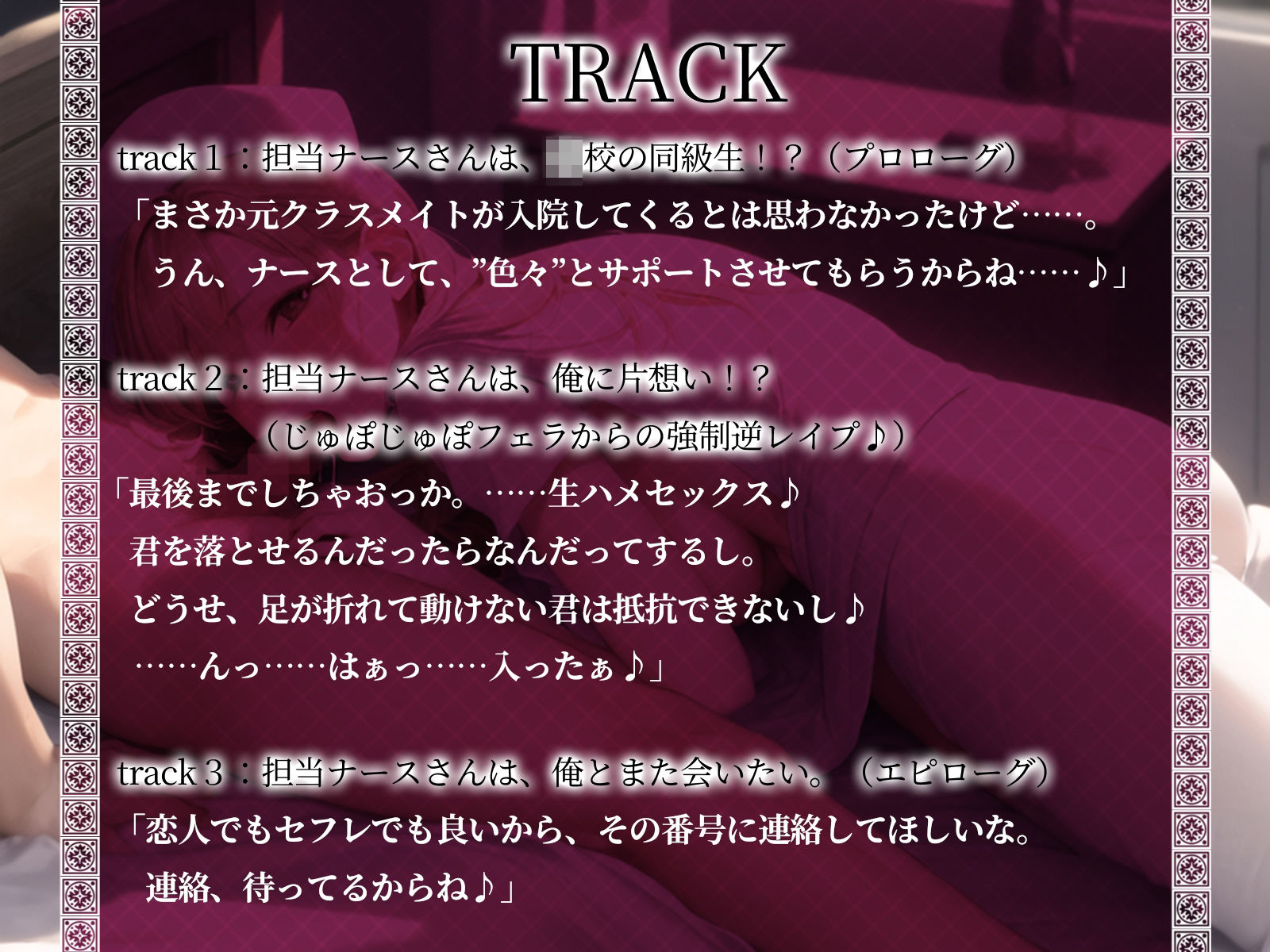 track2:担当ナースさんは、俺に片想い!?(じゅぽじゅぽフェラからの強●逆レ●プ♪)