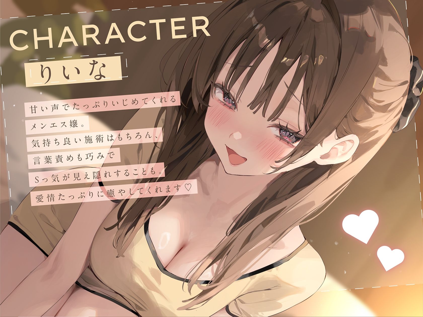 (トラック内容:耳舐め/耳撫で/耳ふー/ささやき/乳首焦らし/乳首責め/言葉責め/からかい)