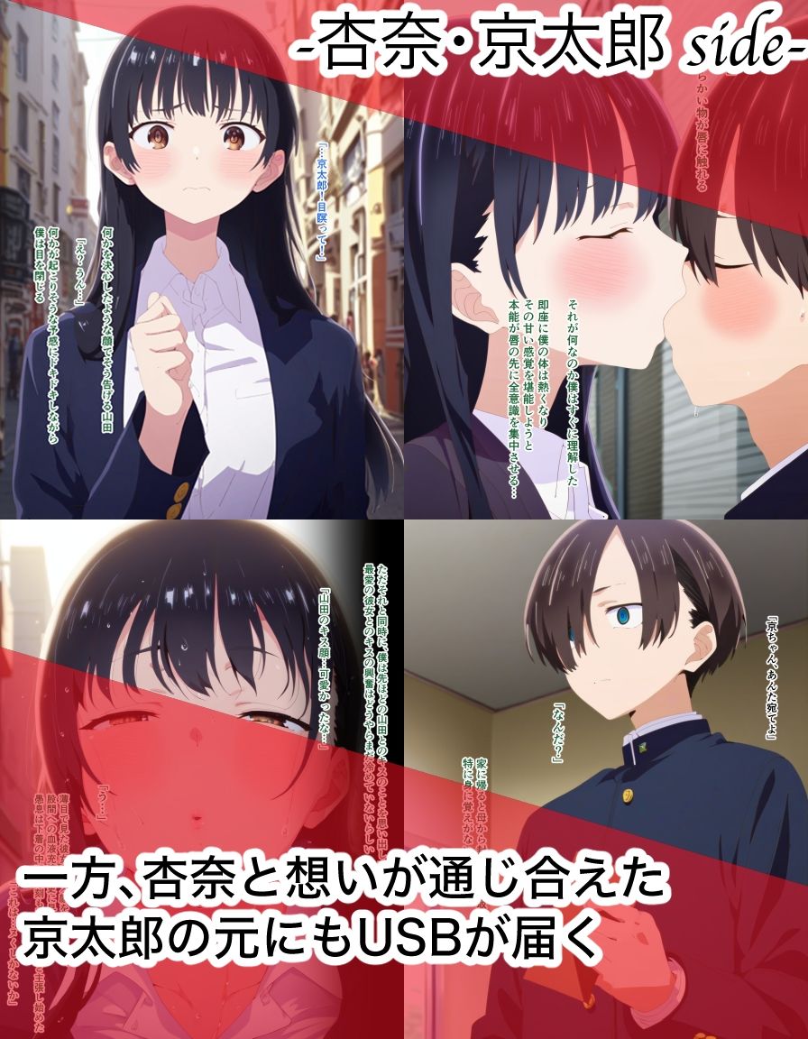夫と京太郎の元にUSBが送られてきて「ご主人様」に調教された妻(早苗)と彼女(杏奈)の動画を見ます。