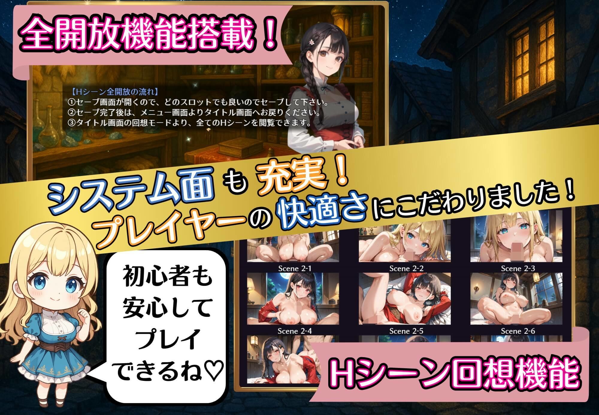 ・ゲーム初心者用に道具屋でHシーン全開放機能搭載