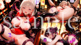 母乳体質に改造され母乳を出しながら絶頂を重ねるヒロイン達。